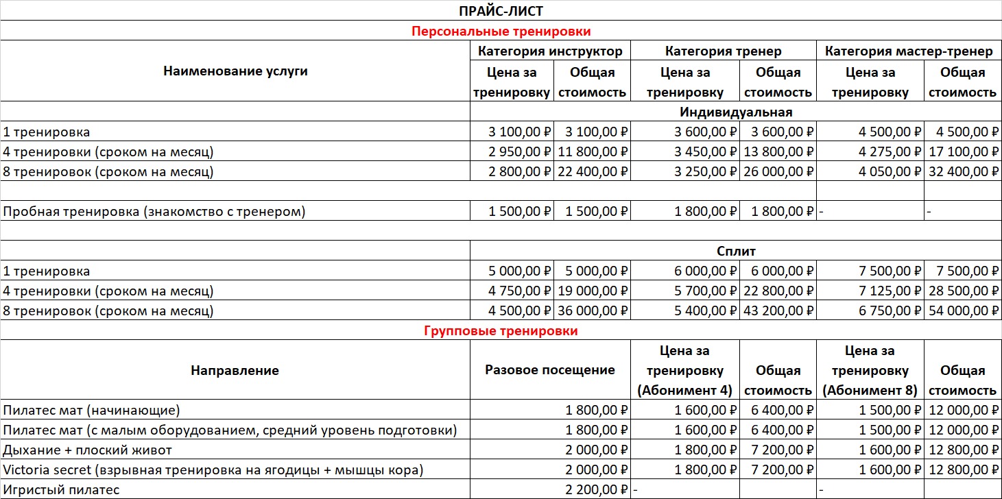 Прейскурант - полный перечень Услуг, предоставляемых Исполнителем, размещенный в социальной сети Исполнителя.